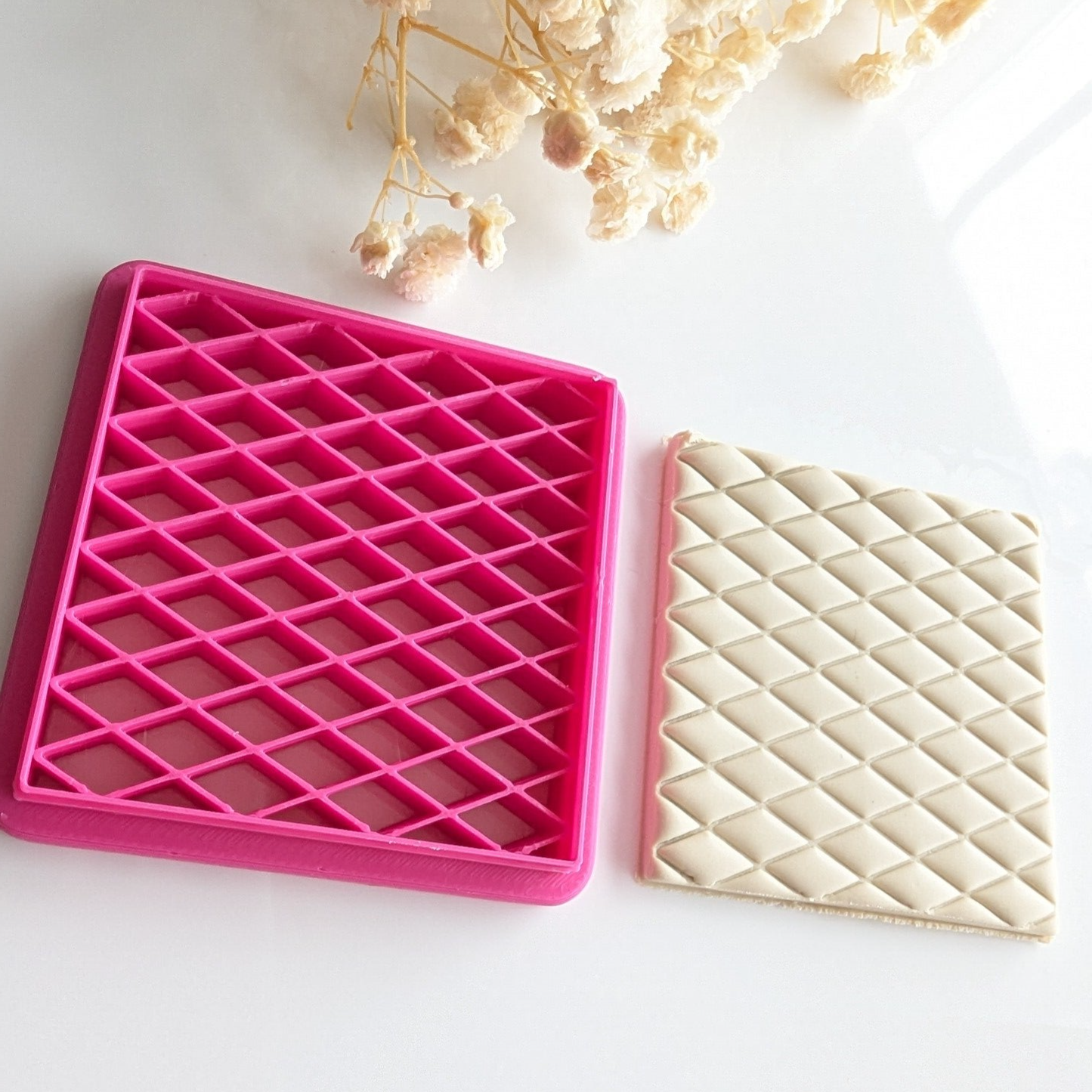 Handige tool om een afdruk/patroon te maken in de klei. Of je nu je hele oorbel voorziet van een afdruk of maar een klein stukje. Met deze tool kun je alle kanten op.