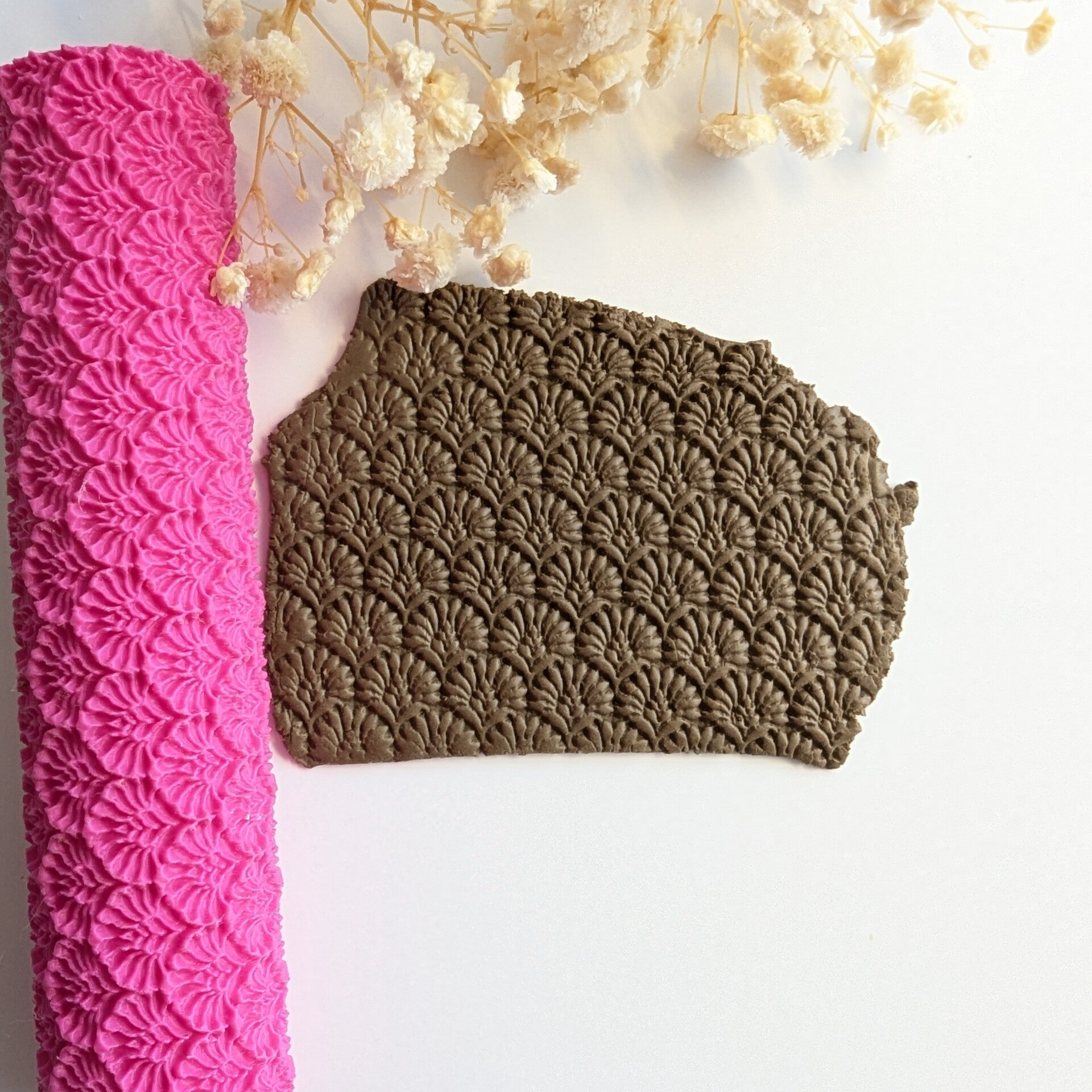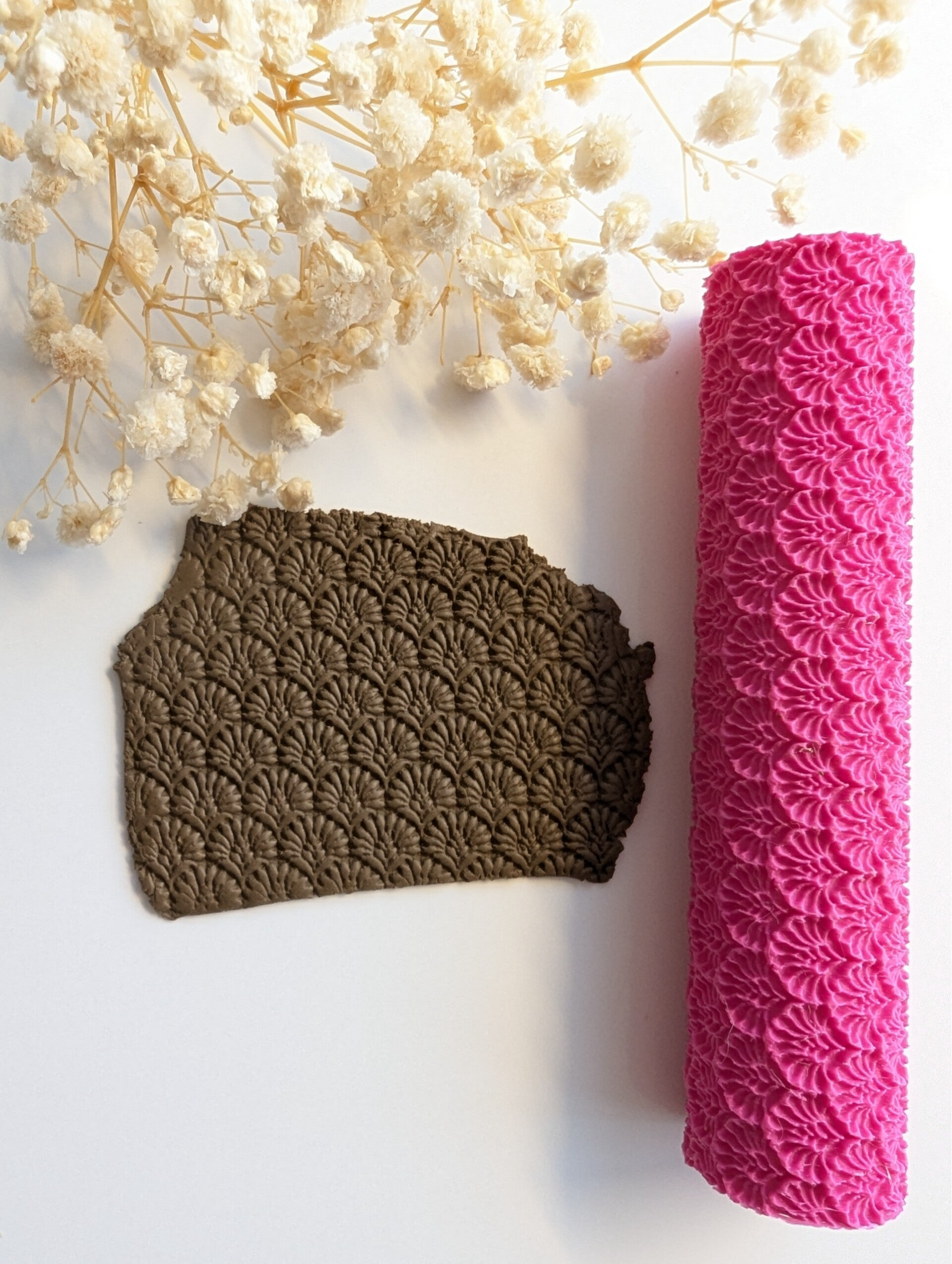 Op de foto zie je de textuurroller van 14 cm. Extra fijn als je vaak werkt met grote plakken klei.