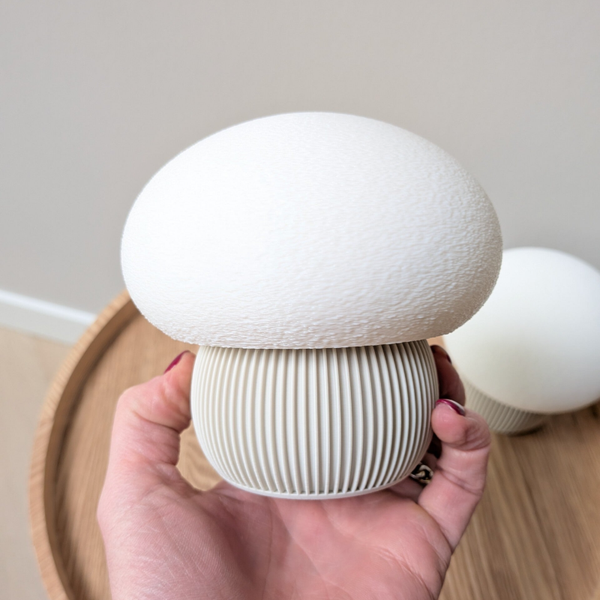 Decoratieve 3D-geprinte paddenstoel met fijne structuur. Een leuk detail voor in huis of als accent bij seizoensdecoratie.