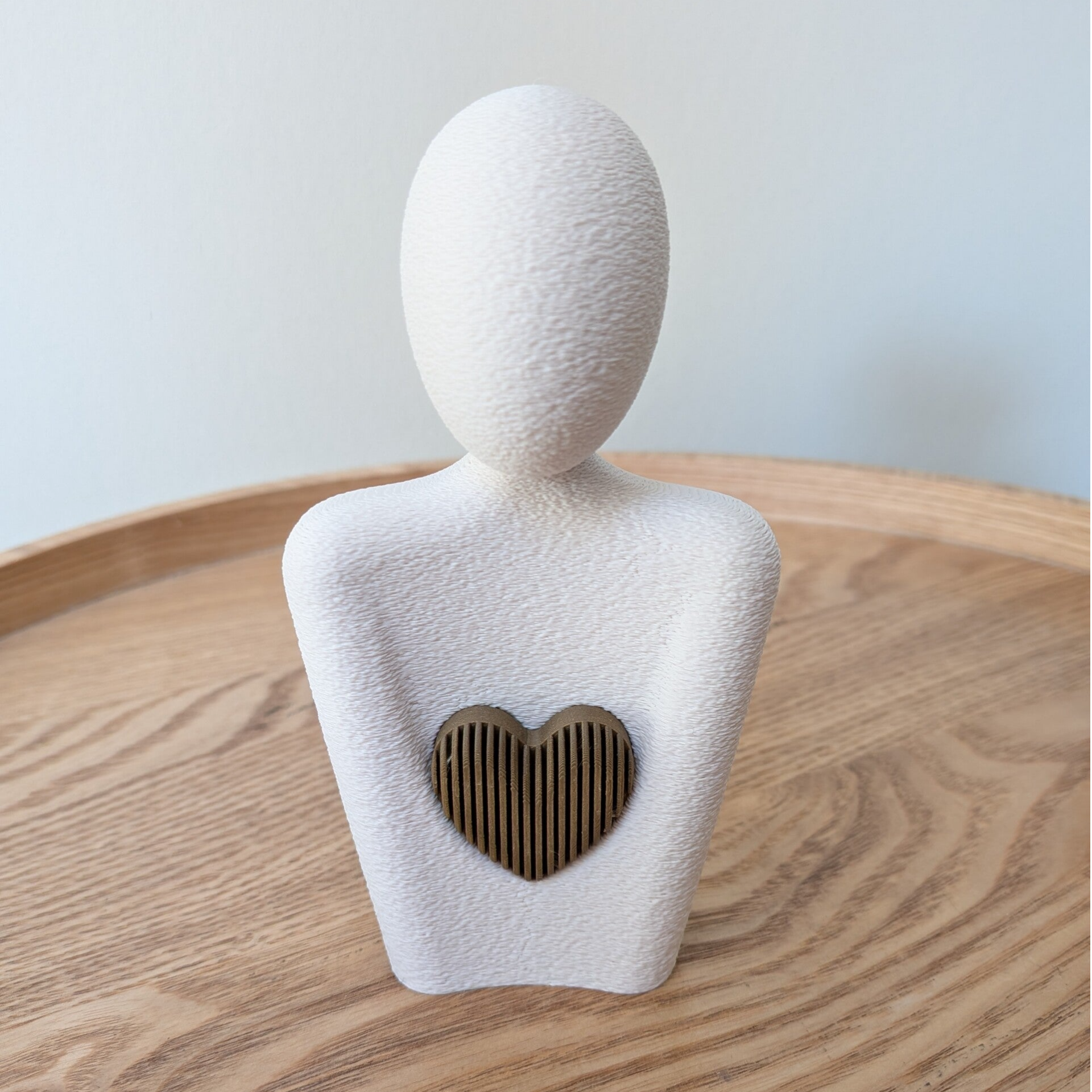 Dit beeldje is met zorg 3D-geprint van PLA, een stevig en lichtgewicht materiaal. Door het 3D-printproces kunnen kleine lijntjes of minimale oneffenheden zichtbaar zijn; dit hoort bij het ambacht en geeft elk beeldje zijn eigen karakter.
