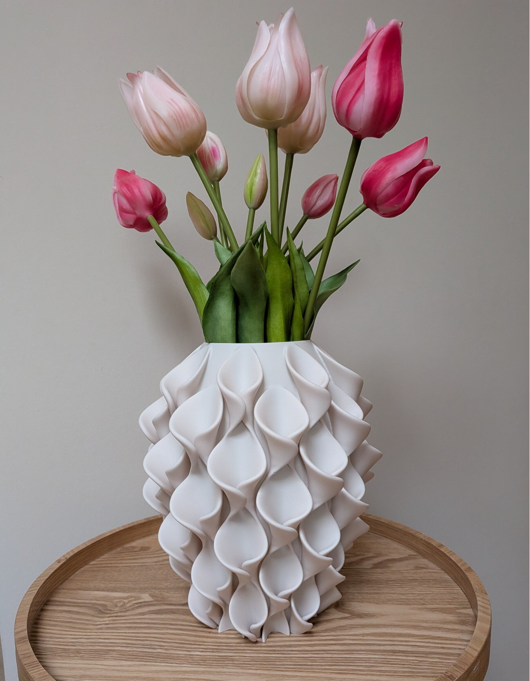 Elke vaas wordt door ons zelf met zorg geprint van hoogwaardig PLA-materiaal, een stevig en duurzaam bioplastic.